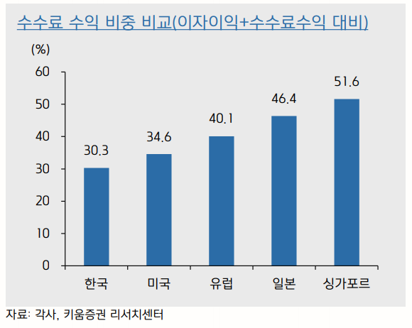 저금리 상황 유지되면서 이자이익 줄어드는 국면, 비이자이익 확대(수수료이익) 중요하지만 국내 은행들 비중은 아직 낮은 편, ELS를 엄청나게 팔았음에도 불구하고 주요 은행들의 비이자이익 대비해서는 아직 부족. ELS 규제 강화는 건전성 강화에는 좋겠지만 수익에 도움이 되는 일은 아닐 듯.