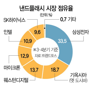 낸드 시장은 보다 많은 플레이어들이 남아 있는 상황. 낸드 가격도 디램까지는 아니지만 이전에 비해 상당히 하락한 가격대를 유지.