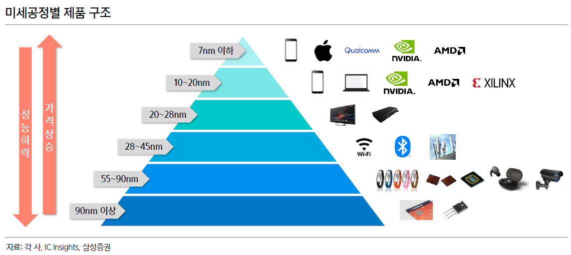 대체로 제품군별로 아래와 같은 노드에서 생산된다.