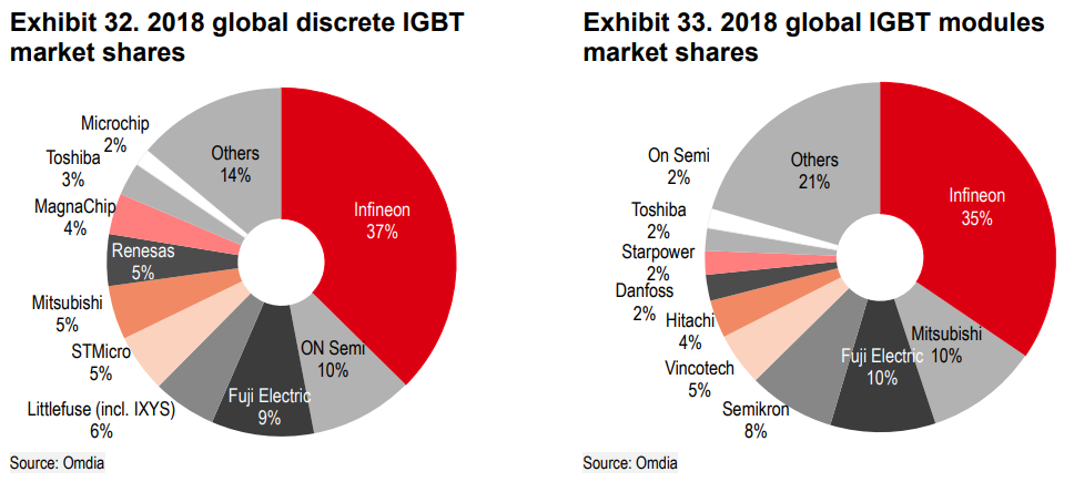 개별 소자 판매하는 것 보다 모듈이 더 판가도 높고 마진도 많이 남는다고 한다. 또한 전력반도체의 경우 더 고용량의 전력을 처리할 수 있는 제품일 수록 더 판가가 좋은 것 같다. 동일한 시스템을 모듈로 구성하는게 단가가 2배 정도 된다고.
