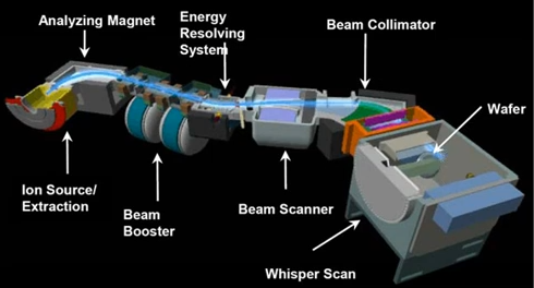 이온 주입 장비는 아래와 같이, 이온을 추출하고 가속해서 웨이퍼에 때리는 역할을 한다. 웨이퍼를 한장 한장 처리하다 보니 Diffusion과는 달리 한번에 대량의 Batch를 처리 할 수 없다고 한다.