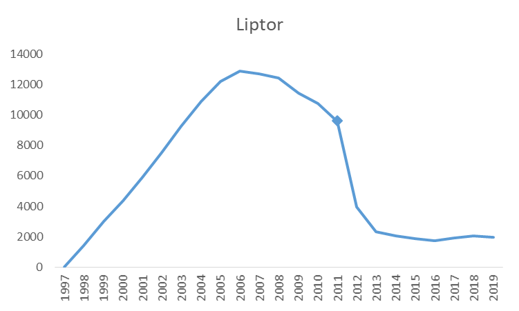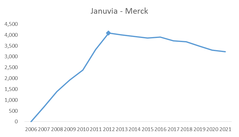 3. Lipitor: 2011년 특허만료. 이렇게 매출이 급격하게 꺾이는 경우도 있다.