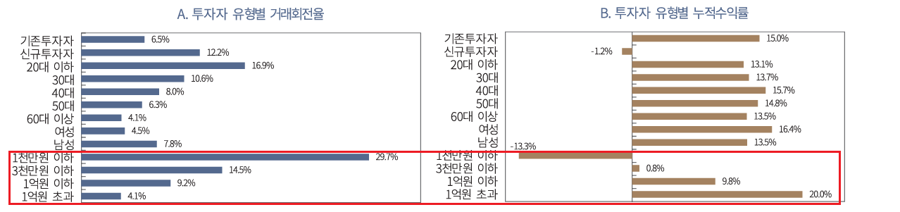 >> 짤짤이 치면 안된다. 돈 많은 형들이 특히 회전율이 낮고 수익률이 높다. 돈없는 놈들이 수익률이 제일 낮고 회전율이 높다.