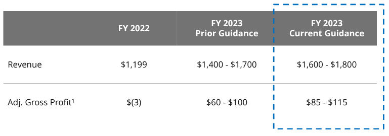 가장 최근 실적발표인 1Q FY23 에서 제공한 연간 가이던스는 아래와 같습니다. 2023년에는 $1,700M 정도의 매출과 6% 정도의 조정 GP마진을 예상하고 있습니다.