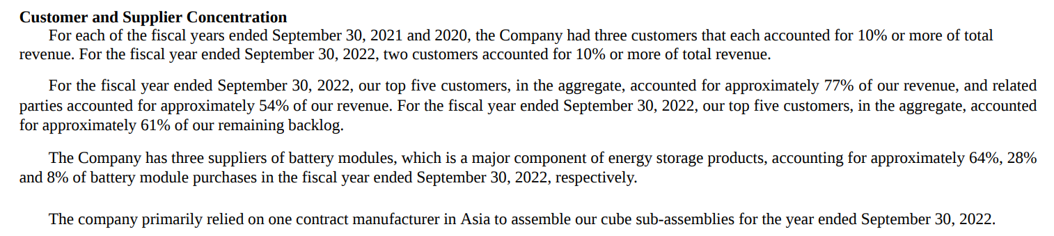 이러한 이유로 동사는 관계기업 매출이 꽤 높은 편입니다. 특히나 모회사인 AES에 전사 매출의 절반 가량을 의존하고 있습니다. 2022년 9월 말 기준, 상위 5개 고객이 매출의 77%를 차지하고 있으며, 10% 이상 고객은 고객사와 배터리는 매우 집중되어 있다. 2022년 9월 말 기준, 상위 5개 고객사가 매출의 77%를 차지하며, 77% 중 54%가 모기업인 AES 입니다.