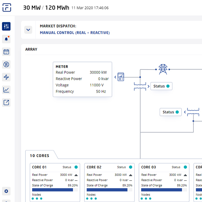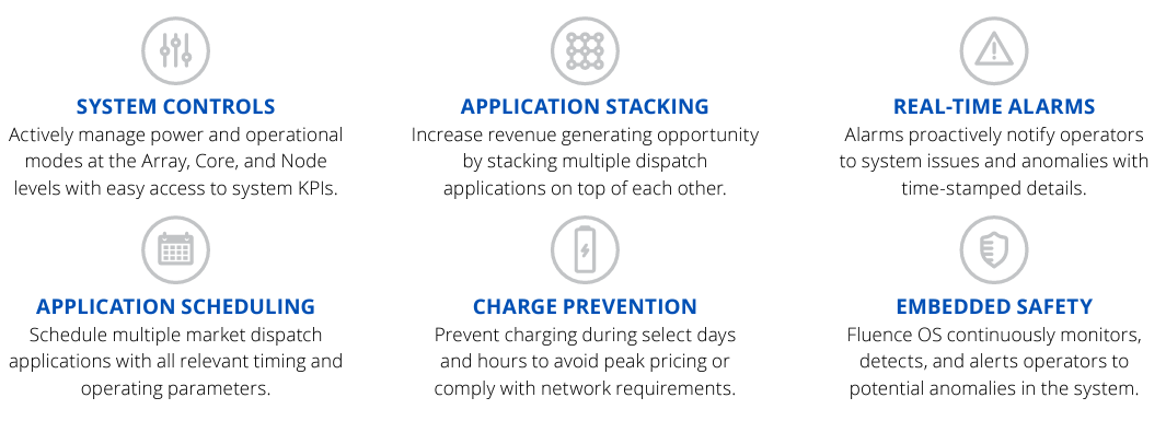 Fluence OS는 ESS의 기능적인 관리를 위한 소프트웨어로, 충전 관리, 알람, 전압 및 주파수 조절과 같은 기능적인 영역을 관리하는 소프트웨어입니다.