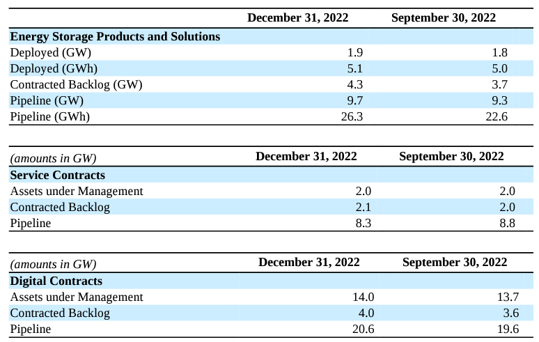 현재까지 동사는 1.9GW, 5.1 GWh 급의 ESS를 운영하고 있으며, 현재 파이프라인은 여태까지 누적 설치량의 거의 5배에 달합니다. 수익성에 중요한 서비스 및 소프트웨어 계약도 높은 수주잔고를 보이고 있습니다. 파이프라인은 아직 계약되지 않았으나, 24개월 이내에 매출로 전환될 가능성이 높은 계약건을 말합니다.