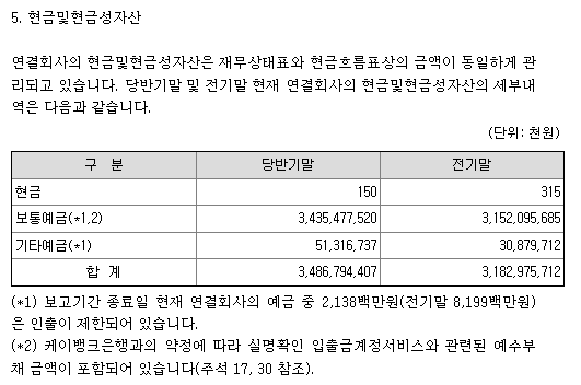 영업외수익에서 금융수익도 꽤 되는데, 고객들에게 받은 예수금에 대한 이자를 받고 있다. 두나무의 상반기 말 기준 예금 및 현금성자산은 약 3.4조원이고 여기서 이자수익이 반기에만 230억정도 발생했다. (현재 장기차입금에 대한 이자비용은 85억 수준). 물론, 현금성 자산은 고객들이 업비트에 맡겨놓은 예수금에 대한 이자로 상응하는 예수부채가 약 3.2조원 있다, 이를 제외한 진짜 현금성자산은 약 2천억 정도.
