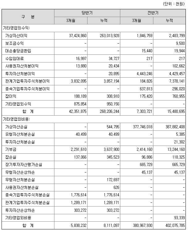 기타 영업외수익의 대부분은 가상자산 상승에 의한 이익으로, 지속적으로 발생하는 수익이라고 보기는 어렵다.